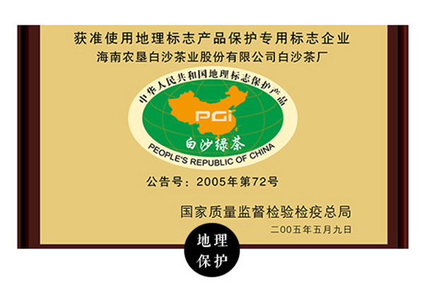 2004年10月29日,原国家质量监督检验检疫总局批准对“白沙绿茶”实施地理标志产品保护。